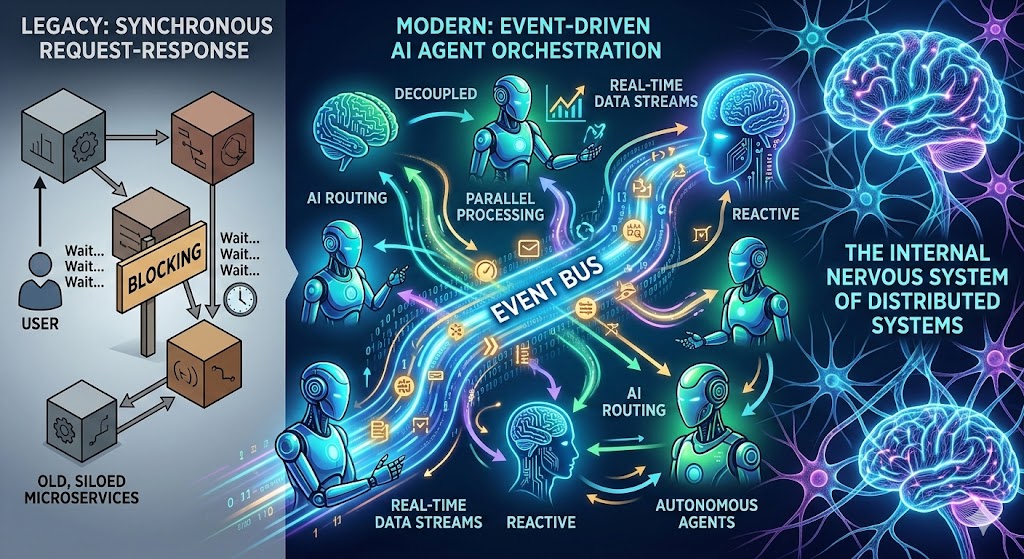 Moving beyond synchronous Request-Response. Learn how Event-Driven AI Agent Orchestration is redefining the "Internal Nervous System" of modern distributed systems.