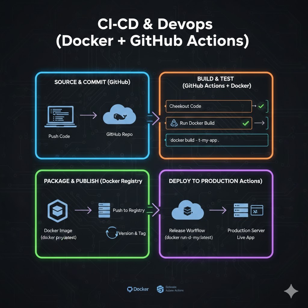 Learn modern DevOps end-to-end: Docker, CI/CD pipelines with GitHub Actions, automated deployments, monitoring, and integrated testing for frontend and backend.